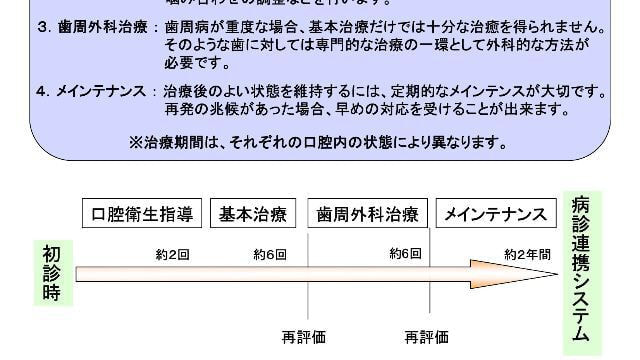 【注意点】 生活習慣病のひとつである歯周病の治療期間は,長期間(年単位)に渡ります