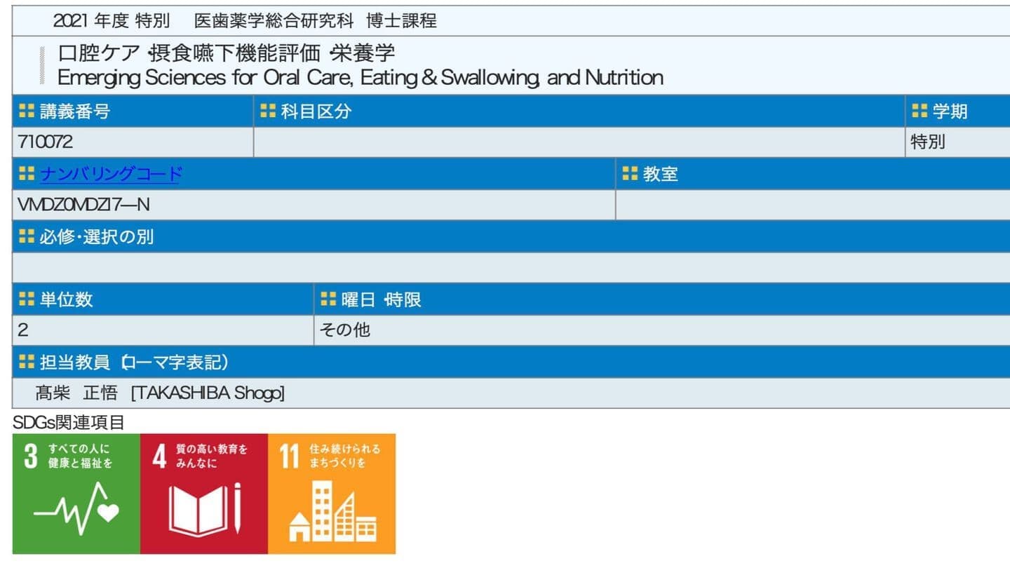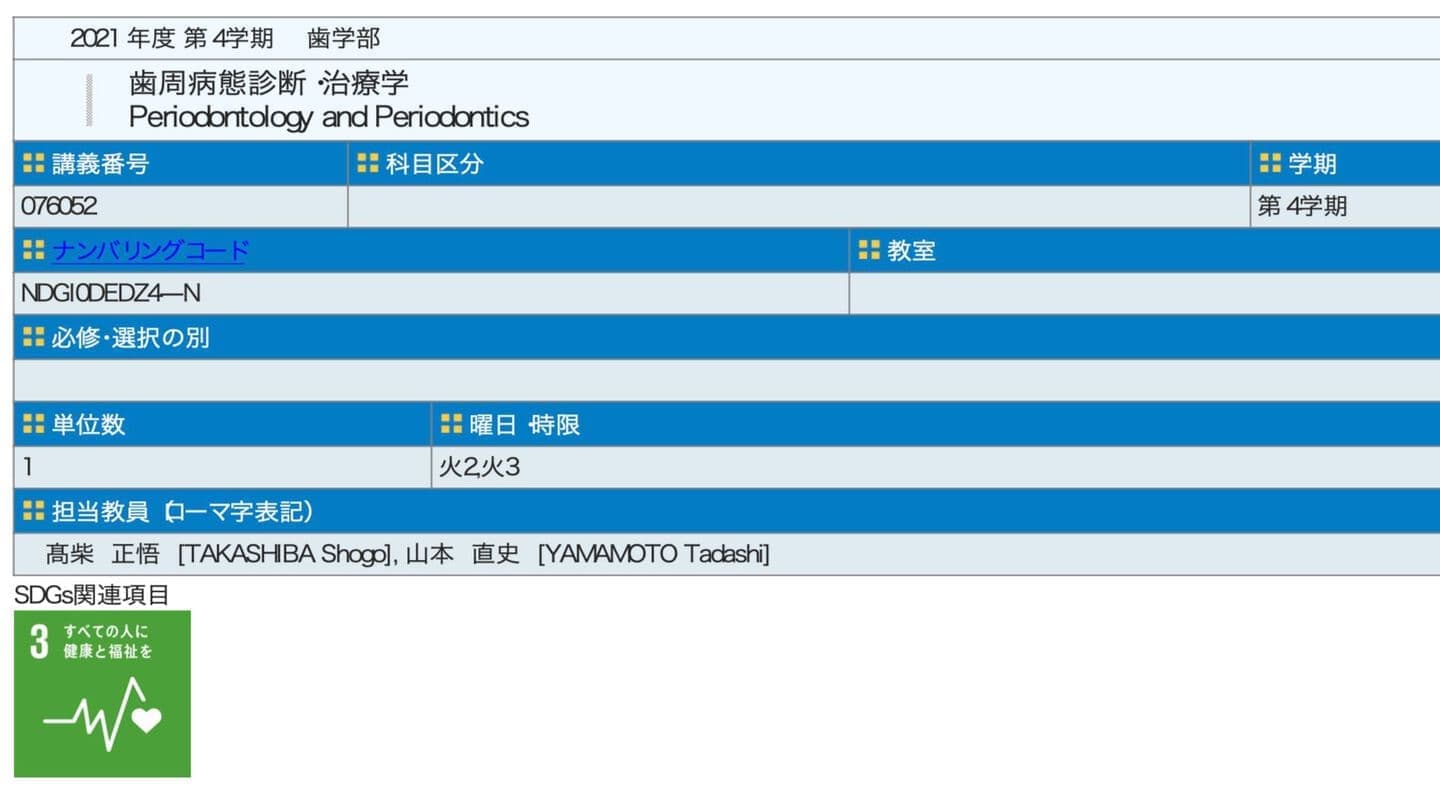 第1学期 | 2021919046 | 口腔内科学 | 木3〜4 |