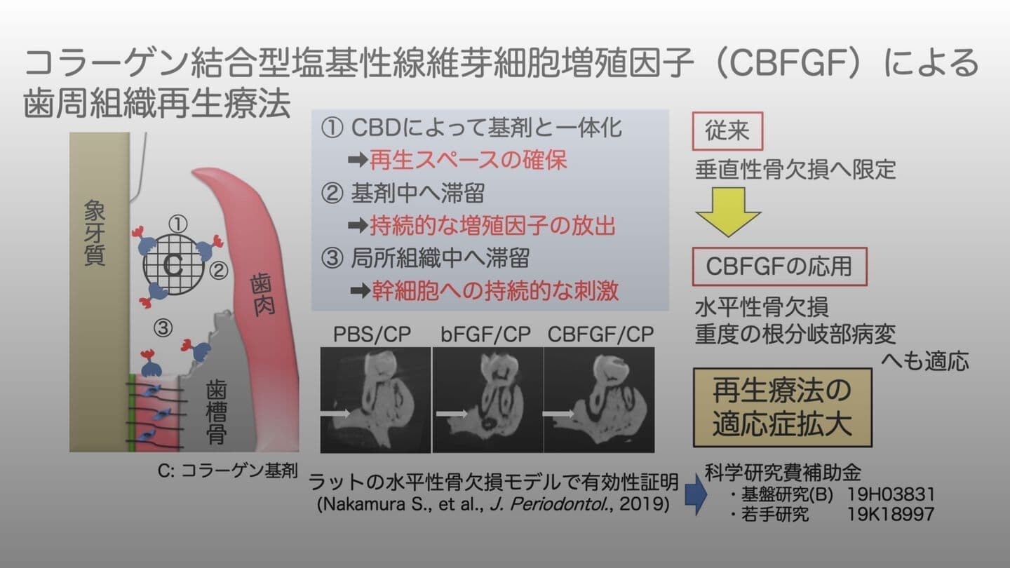 さらに最近では,2020年に国立研究開発法人日本医療研究開発機構(AMED)の「橋渡し研究戦略的推進プログラム(2次公募)」(シーズB)で,「がん化学療法に伴う口腔粘膜炎の疼痛緩和・発症制御を目指す新規口腔粘膜保護材の開発」も採択されました。
